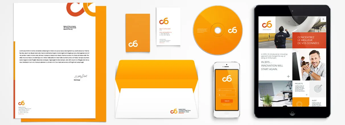 Complete graphic identity. Specializing in the design and publishing of ECM software packages, C6 aims to offer high-performance and easy-to-use products in order to meet business requirements of varying complexity.