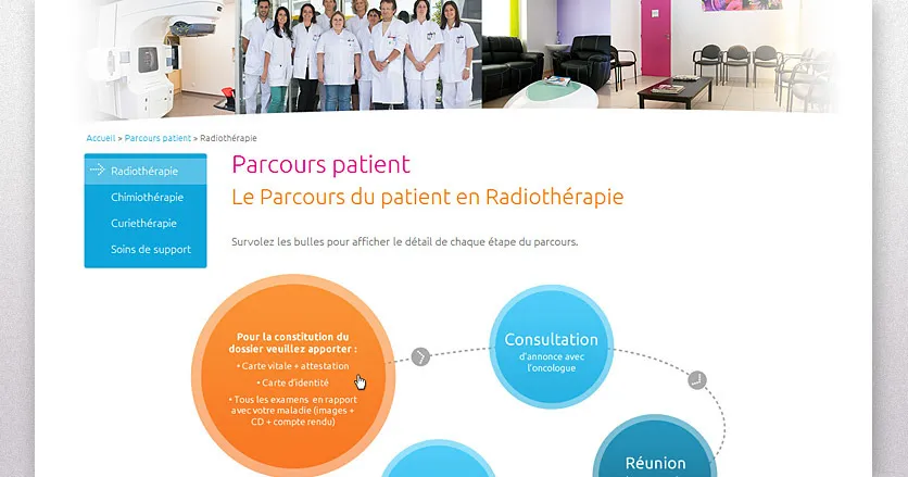 Design and complete production of the website of the Greater Montpellier Cancer Center. Fully administerable, it includes in addition to the public part, an extranet reserved for the clinic's staff, as well as for private doctors. We have also taken all the photographs of this site.