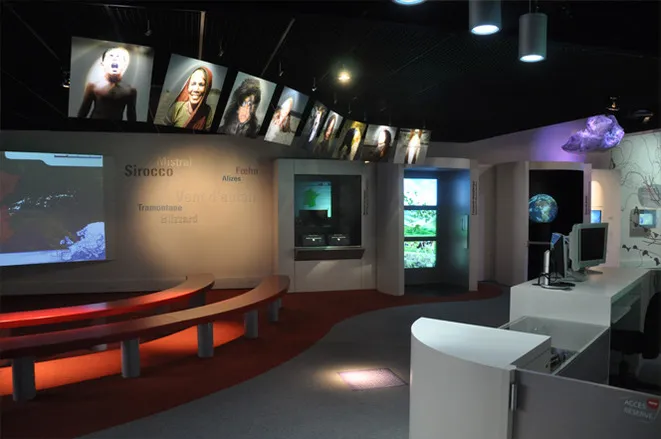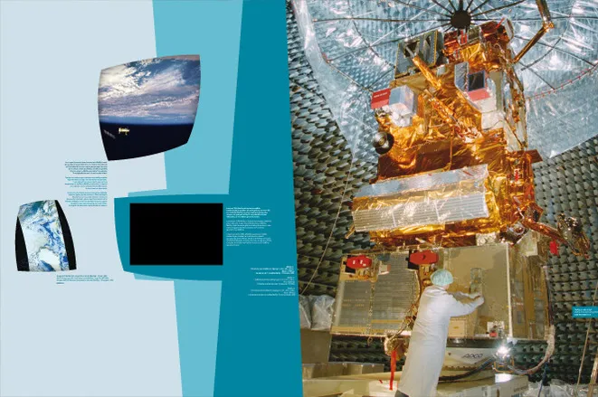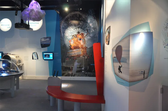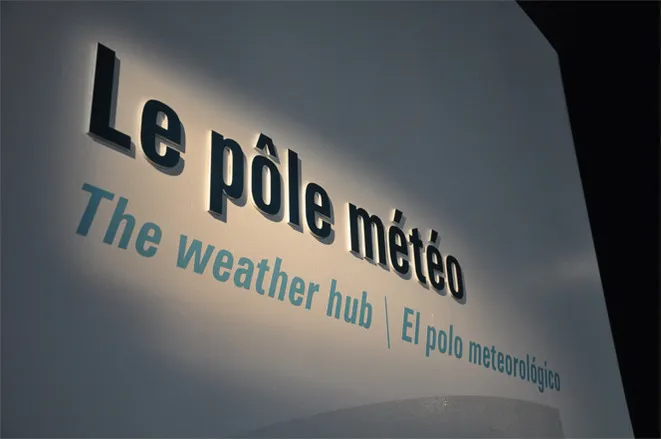Graphic design of the permanent exhibitions of the Cité de l'Espace, Parc de l'aventure spatiale in Toulouse. This centre, the Weather Centre, offers a behind-the-scenes look at meteorology, from the construction of satellites to the production of a weather report.