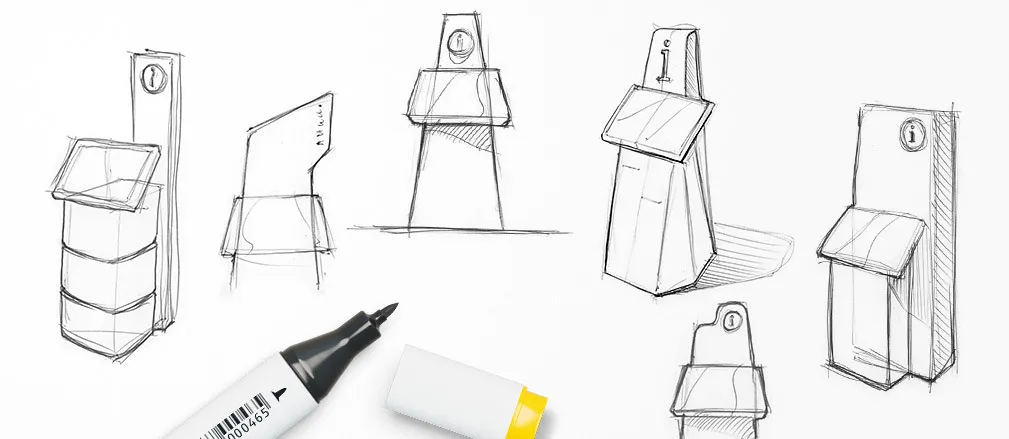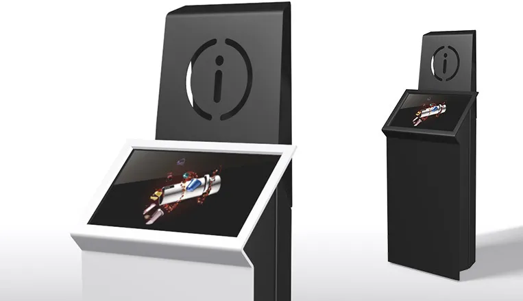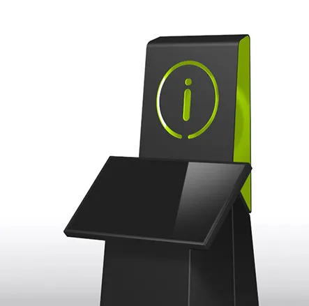 ESII, a specialist in reception and queue management, consulted us to imagine their new XL interactive terminal. A multitasking terminal, which can meet all types of needs: smart card reader (credit card, health card, etc.), barcode reader, fingerprint reader, label printer, A4 printer, variable screen size up to 27" double screen... in short, a terminal capable of anything. We have created a base that allows us to adapt to multiple needs by embedding the different modules on a case-by-case basis. And we have declined it in three versions: the base alone, or topped with a display support to receive a printed communication, or topped with a second screen. This charging station is available for sale on the ESII website.