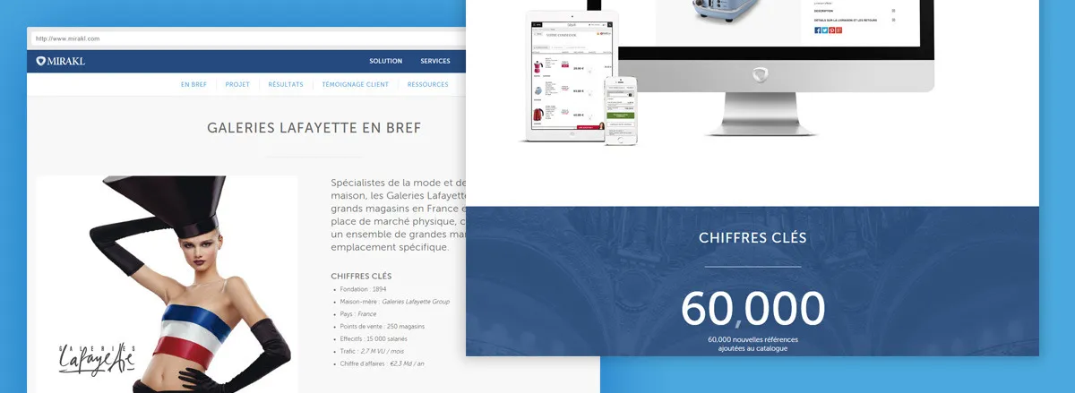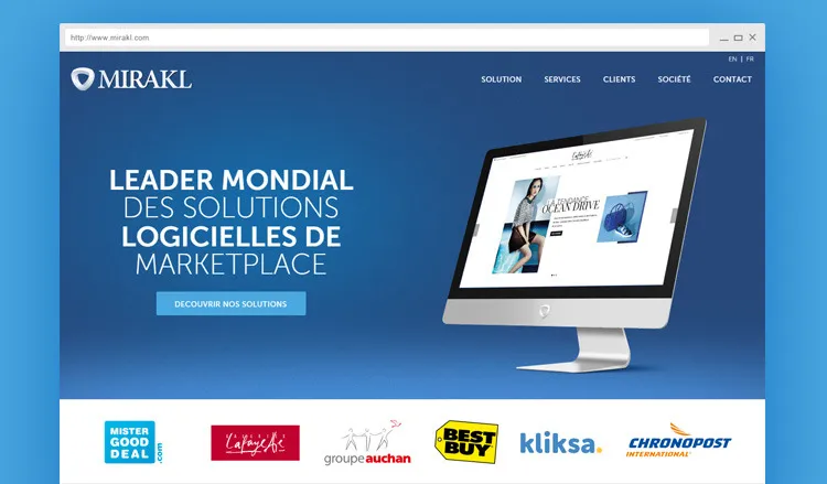 Design and production of the Mirakl.com site. With prestigious clients such as Galeries Lafayette, the Auchan group, Carrefour, Darty... Mirakl is the world leader in e-commerce marketplace platforms. Cubedesigners was in charge of the complete creation of the site: identity & logo, web design, editorial advice, responsive desktop/tablet/mobile integration, developed under WordPress.