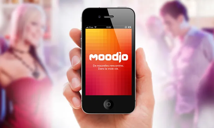 Moodjo is a smartphone app designed to make real-life dating easier. The Cubedesigners agency was chosen to create the logo.
