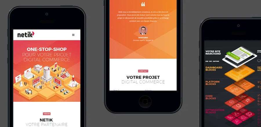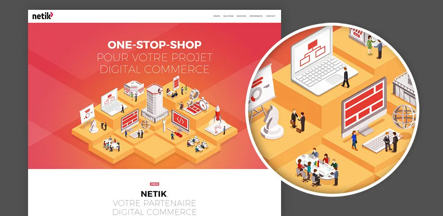 Netik is a digital commerce agency: integrator, consulting & services. A subsidiary of the Aliznet Group, Netik is a full-integrated e-commerce solutions provider. Cubedesigners was in charge of the complete creation: identity & logo, web design, editorial advice, responsive desktop/tablet/mobile integration, developed under WordPress.