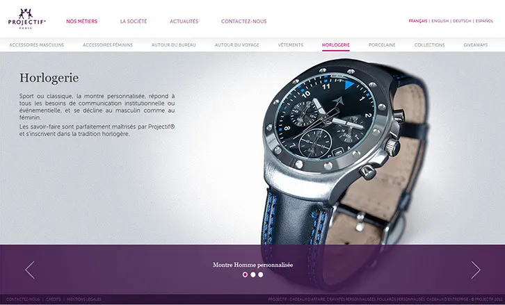 Projectif is an agency specialising in personalised brand image gifts and communication objects. We have entirely designed and produced this HTML5 website, including photo shooting and product editing.