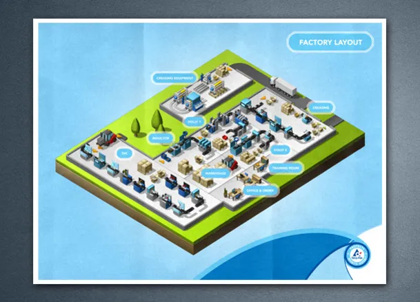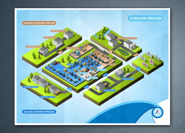 Creation of a series of eight posters illustrating the manufacturing process of a Tetrapak packaging machine.