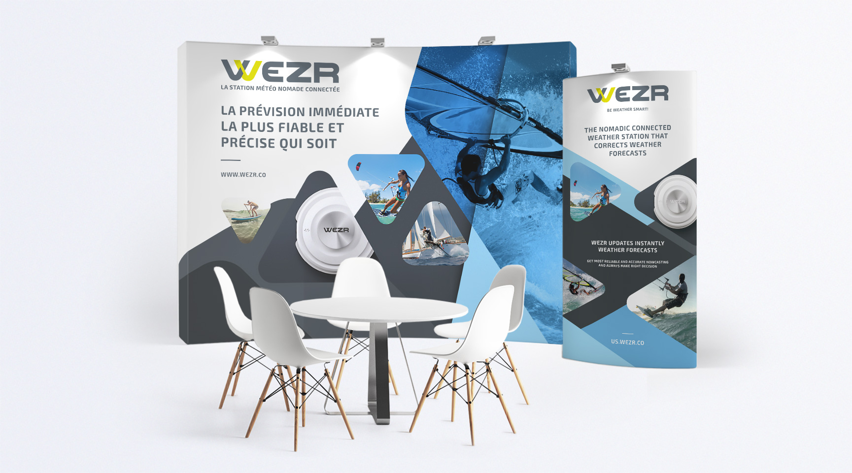 Cubedesigners designs tailor-made stands for trade shows. Wall mounts, Kakemonos, posters, video animations, we design all the elements that make up attractive and coherent spaces. We support our clients from design to completion, respecting the specifications of the events and the allocated budget envelopes. Our mastery of 3D tools allows us to create realistic previews, allowing our clients to project themselves easily and validate the visual consistency of the designs.